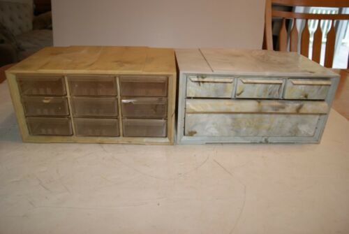 2 Vintage Akro Mils Parts Drawer Cabinets - Plastic Swirl Pattern