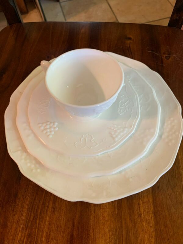 Set Of 6~ Grapevine Fruit Designed Milk Glass Plates