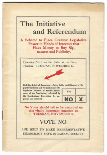 Title (ebay affiliate link): 1918? Massachusetts Political Booklet, The Initiative And Referendum, Vote No