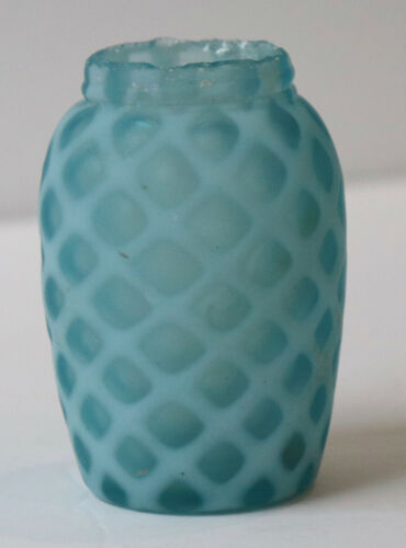 ANTIQUE Salt Shaker BUBBLE LATTICE Blue & White VICTORIAN GLASS