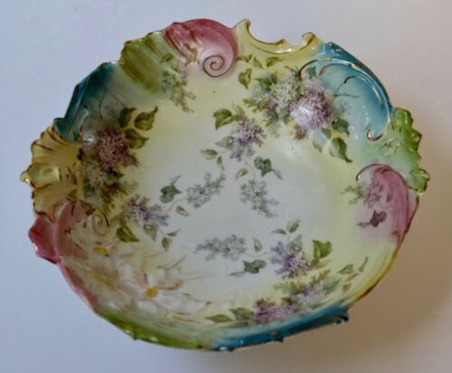 CHIC ANTIQUE Bowl LILACS Pastel Colors RS PRUSSIA? Shabby