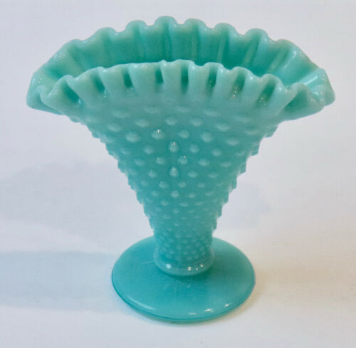 VINTAGE Fan Vase FENTON Blue Hobnail MINIATURE