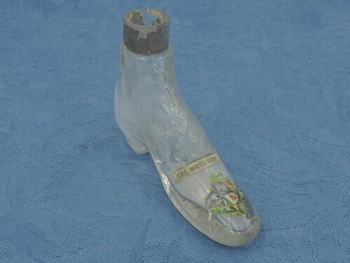 Antique Victorian Clear Glass Boot Vase Perfume Bottle Essence of Moss Rose