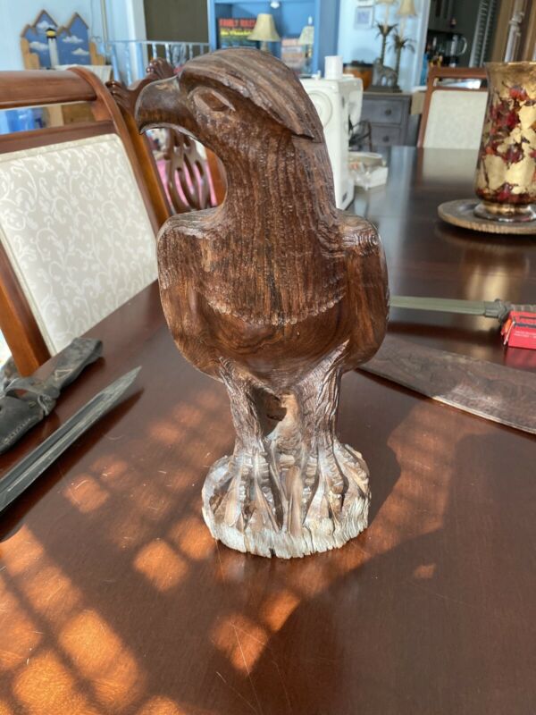 VINTAGE HAND CARVED IRON WOOD EAGLE BIRD SCULPTURE