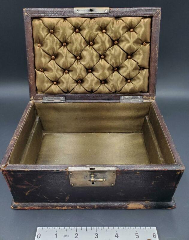 Title (ebay affiliate link): Antique Wood Box Exterior Lined with Leather and Olive Green Cushioning Interior
