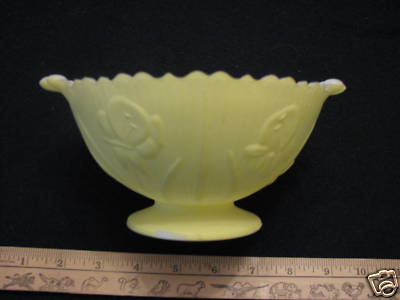 Vintage Yellow Milk Glass Iris & Herringbone Dish