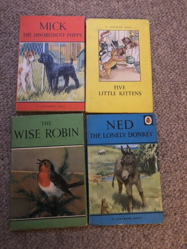 Title (ebay affiliate link): VTG 4x Ladybird Books Series 497 Wise Robin Ned Mick Five Little Kittens