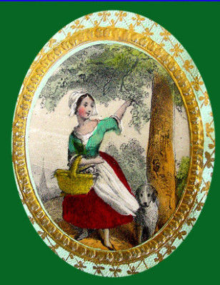 c1830 Coated Stock Label GIRL PICKING FRUIT & DOG
