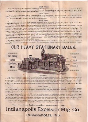 1800s Indianpolis Excelsior Mfg.Baling Machines flyer