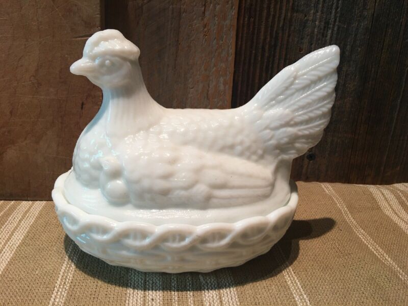 Vintage Milk Glass Hen With Baby Chicks on Nest