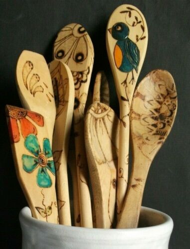 Title (ebay affiliate link): Wooden Spoons Painted Burned Decorative Serving Country Carved Primitive Flowers