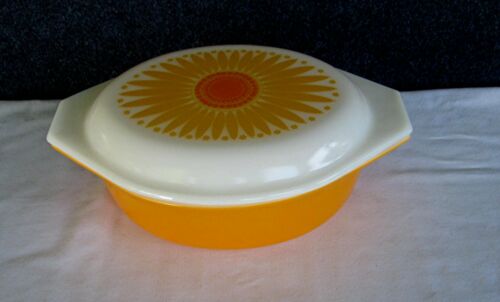 Title (ebay affiliate link): PYREX YELLOW & ORANGE DAISY SUNFLOWER PATTERN 1.50 QT. OVAL CASSEROLE COOKWARE
