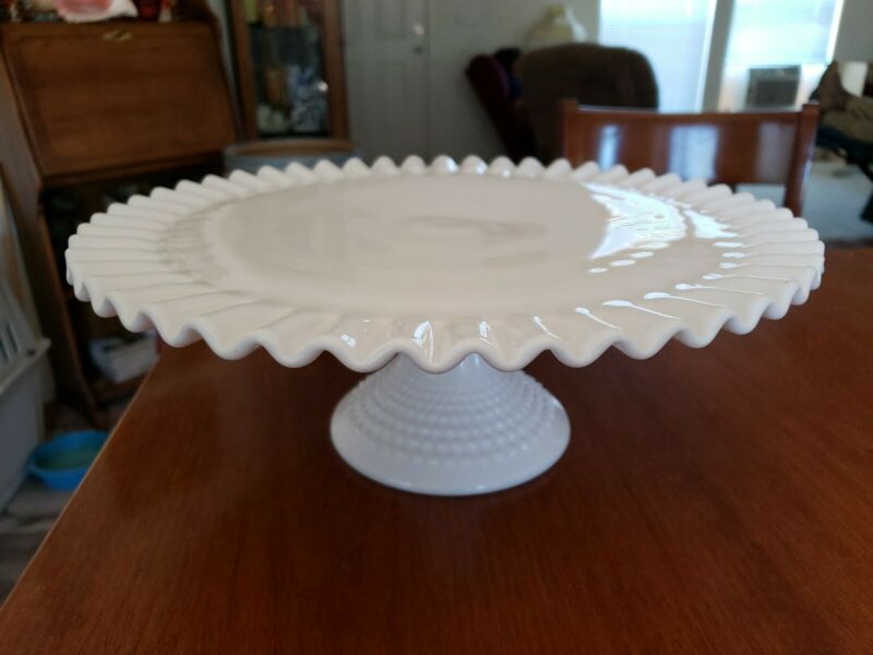 Title (ebay affiliate link): VINTAGE FENTON HOBNAIL WHITE MILK GLASS PEDESTAL CAKE STAND RUFFLED EDGE!L@@K!!!