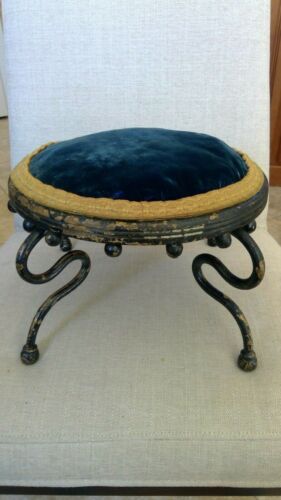 Title (ebay affiliate link): Vintage Antique Victorian Style Round Foot Stool Wood Metal - Blue Velvet