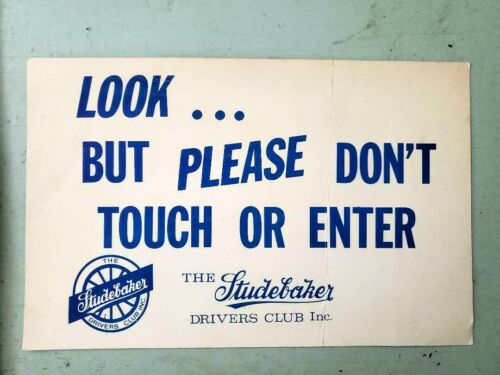 Title (ebay affiliate link): VINTAGE OFFICIAL THE STUDEBAKER DRIVERS CLUB SHOW CAR PLACARD
