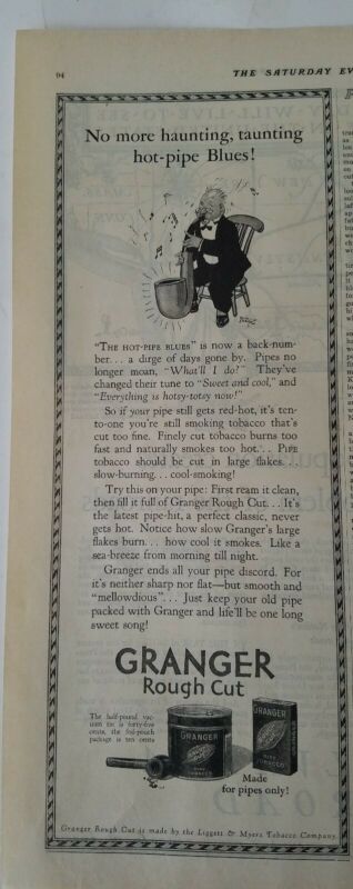 Title (ebay affiliate link): 1926 Granger rough cut tobacco no hot pipe Blues Tony Sarg art vintage ad