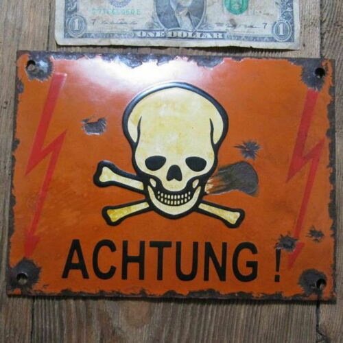 Title (ebay affiliate link): 100% ORIGINAL - Porcelain Sign 1939-1945, WWII, Danger, Skull & Crossbones No 99