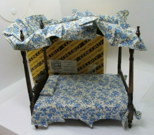 VINTAGE CONCORD MINIATURES DOLL HOUSE FURNITURE CANOPY or Post BED WITH BOX