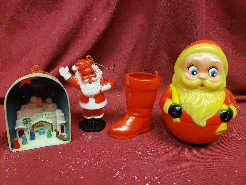Title (ebay affiliate link): Christmas in July!! Vintage Plastic Santa Claus Boot Nativity Ornament Roly Poly
