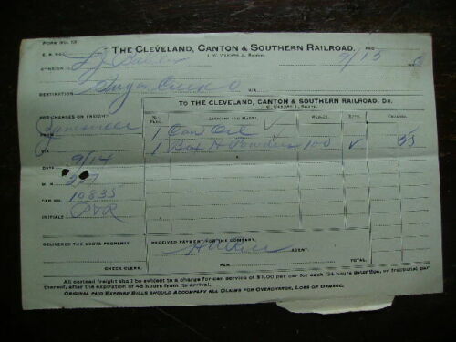 Title (ebay affiliate link): CLEVELAND CANTON & SOUTHERN RAILROAD SUGAR CREEK OH 1896 FREIGHT RECEIPT