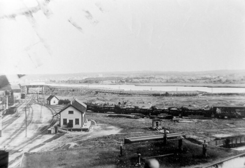 HG483 photo NEGATIVE 35mm railroad train estate Buzzards Bay MA bridge tracks