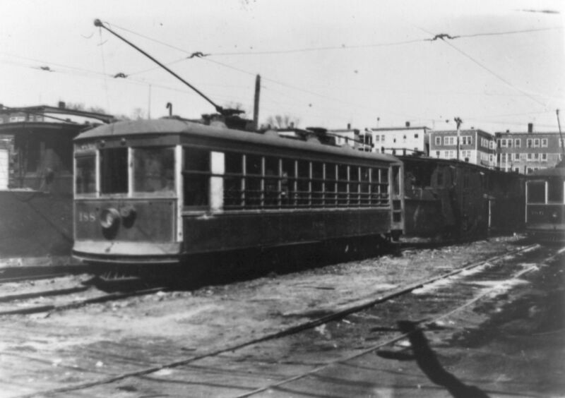 M2936 photo NEGATIVE Lewiston Maine #188 electric train trolley car early 1900s