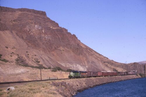 Title (ebay affiliate link): ORIGINAL KODACHROME BURLINGTON NORTHERN ACTION GP9 # 1975 WISHRAM, WA 1970