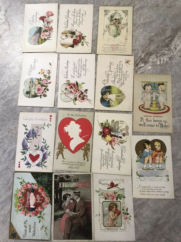Lot Of Valentine Vintage Postcards C 1900-1930 A