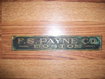 Vintage Brass Sign F S PAYNE BOSTON