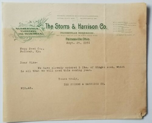 Title (ebay affiliate link): 1931 Letterhead Painesville Ohio The Storrs & Harrison Nurseries