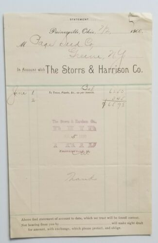 Title (ebay affiliate link): 1900 Letterhead Painesville Ohio The Storrs & Harrison Nurseries