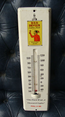 Original RED DEVIL'S Lighting Fluid Thermometer Sign