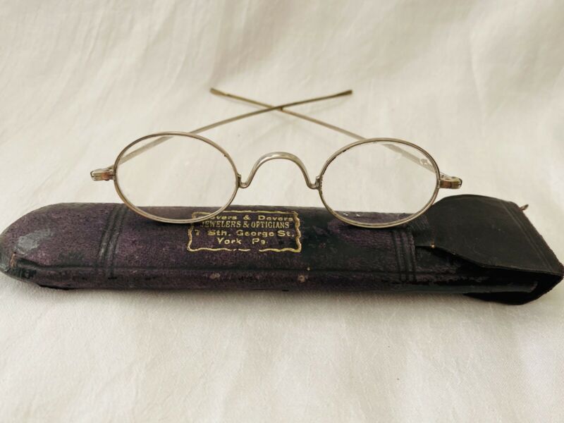 Title (ebay affiliate link): Antique Silver Tone CIVIL WAR FRANKLIN CURLY NOSE Looking SPECTACLES w/ Case
