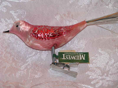 Title (ebay affiliate link): VINTAGE MIDWEST GLASS PINK BIRD CHRISTMAS ORNAMENT