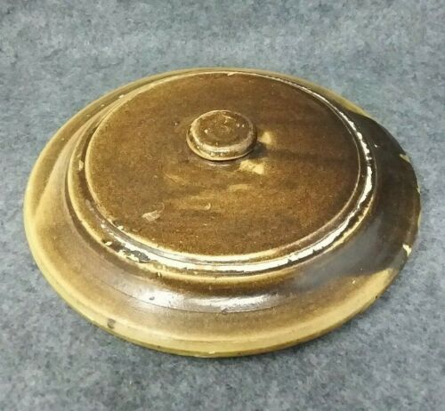 Early Stoneware 2 Gallon Brown Glaze Crock LID ONLY