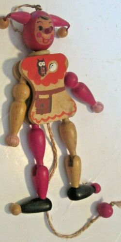 Vintage wooden JESTER Clown pull string Puppet 7", made in Austria