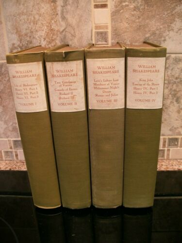 Title (ebay affiliate link): 1909 WORKS OF WILLIAM SHAKESPEARE VOLUME 1 THROUGH 4 LIMITED EDITION