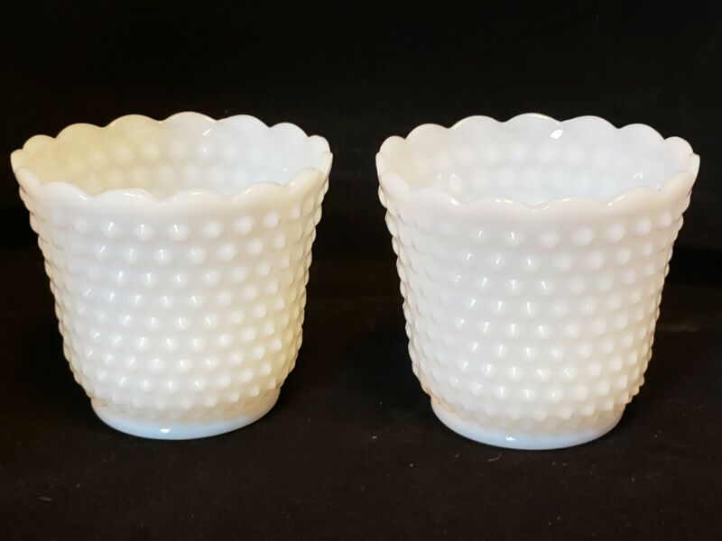 Title (ebay affiliate link): 2 Vintage Fireking Milk glass Hobnail Planters Depression Glass