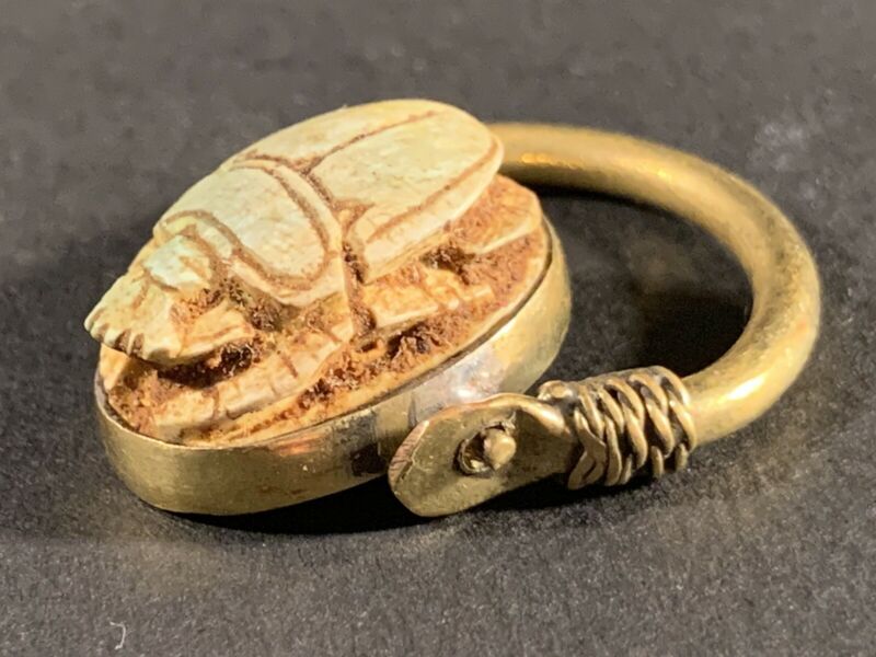 Title (ebay affiliate link): ANCIENT EGYPTIAN BRONZE / GUILDED SCARAB RING WITH HIEROGLYPHS - CIRCA 770-332BC