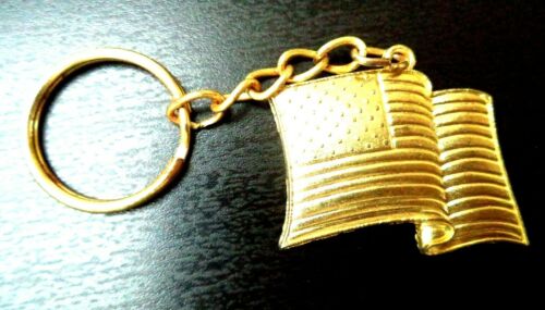 STUNNING VINTAGE ESTATE AMERICAN FLAG USA GOLD TONE 3" KEY CHAIN!!! 3537J
