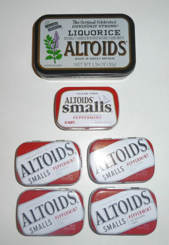 Title (ebay affiliate link): 6 Empty Altoids Metal Tin Boxes Peppermint Liquorice Collectible Crafts Fishing