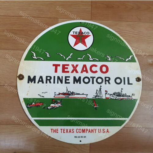 TEXACO MOTOR OIL PORCELAIN ENAMEL SIGN 12 INCHES ROUND