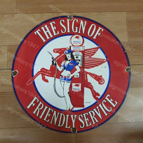 MOBIL GAS SERVICE PORCELAIN ENAMEL SIGN 12 INCHES ROUND