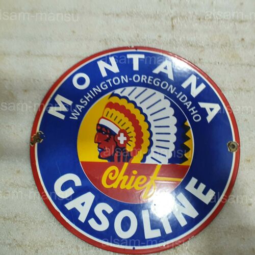 MONTANA GASOLINE 12 INCHES ROUND VINTAGE ENAMEL SIGN