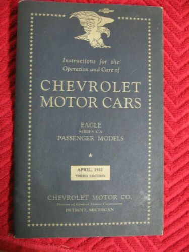Title (ebay affiliate link): Original 1933 Chevrolet Eagle series CA Operation & Care booklet VERY VERY NICE