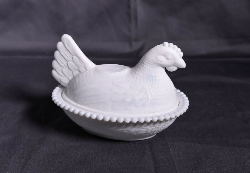 Vintage Indiana Glass. Milk Glass Hen on Nest covered Candy Dish