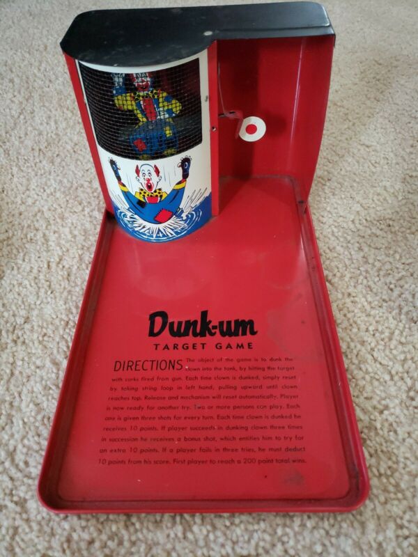 VINTAGE DUNK EM CLOWN TIN METAL CORK TARGET GAME DAISY