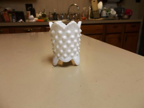 VINTAGE HOBNAIL MILK GLASS TOOTHPICK HOLDER FOOTED 3" TALL NICE