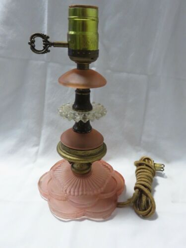 ANTIQUE SMALL PINK GLASS BOUDOIR BEDROOM BEDSIDE LAMP