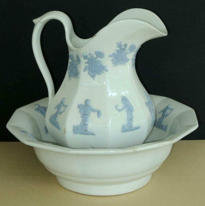 Title (ebay affiliate link): 1840s English Ironstone Seasons Pitcher & Bowl Basin Set T Edwards Staffordshire